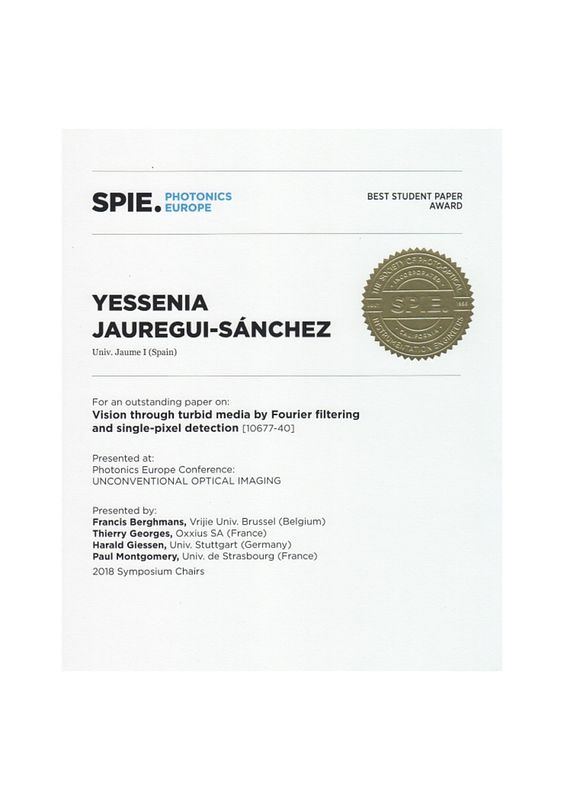 I was awarded a 3-year predoctoral contract to develop novel imaging techniques through scattering media using a single-pixel camera in the GROC group at Universitat Jaume I, Castellón de la Plana, Spain.
