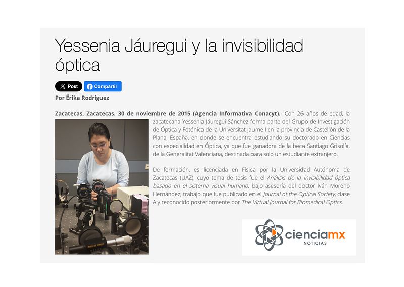 In November 2015, CONACYT (Mexican National Research Council) published an article about my academic journey.